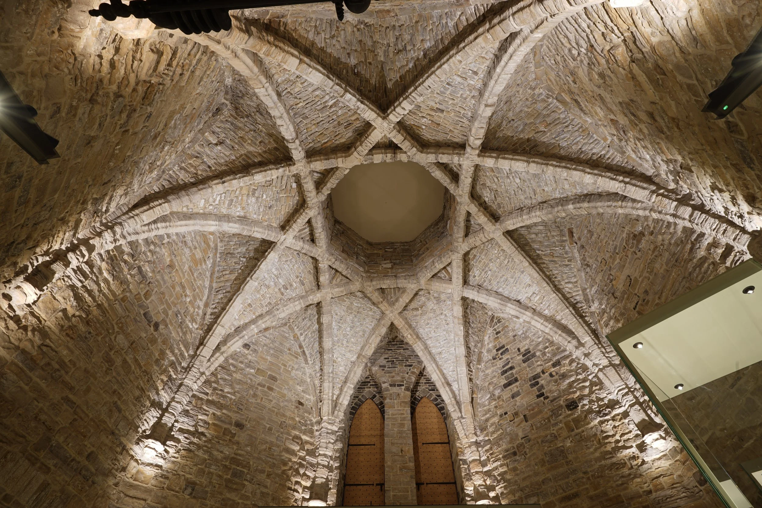 The Monk’s dormitory features a huge south facing window that despite the huge amounts of light that flooded into the space, made the roof gloomy and meant that the architecture was hard to appreciate. SVA designed a discreet scheme that celebrated the roofs’ impressive structure whilst also providing lighting for the exhibition below. There was a similar dilemma in the Great Kitchen where the giant chimney that was being used as a skylight was sealed in order to control the light levels in the exhibition, protecting the precious artefacts. Spotlights were angled upwards allowing light to skim off the brickwork, revealing its texture.