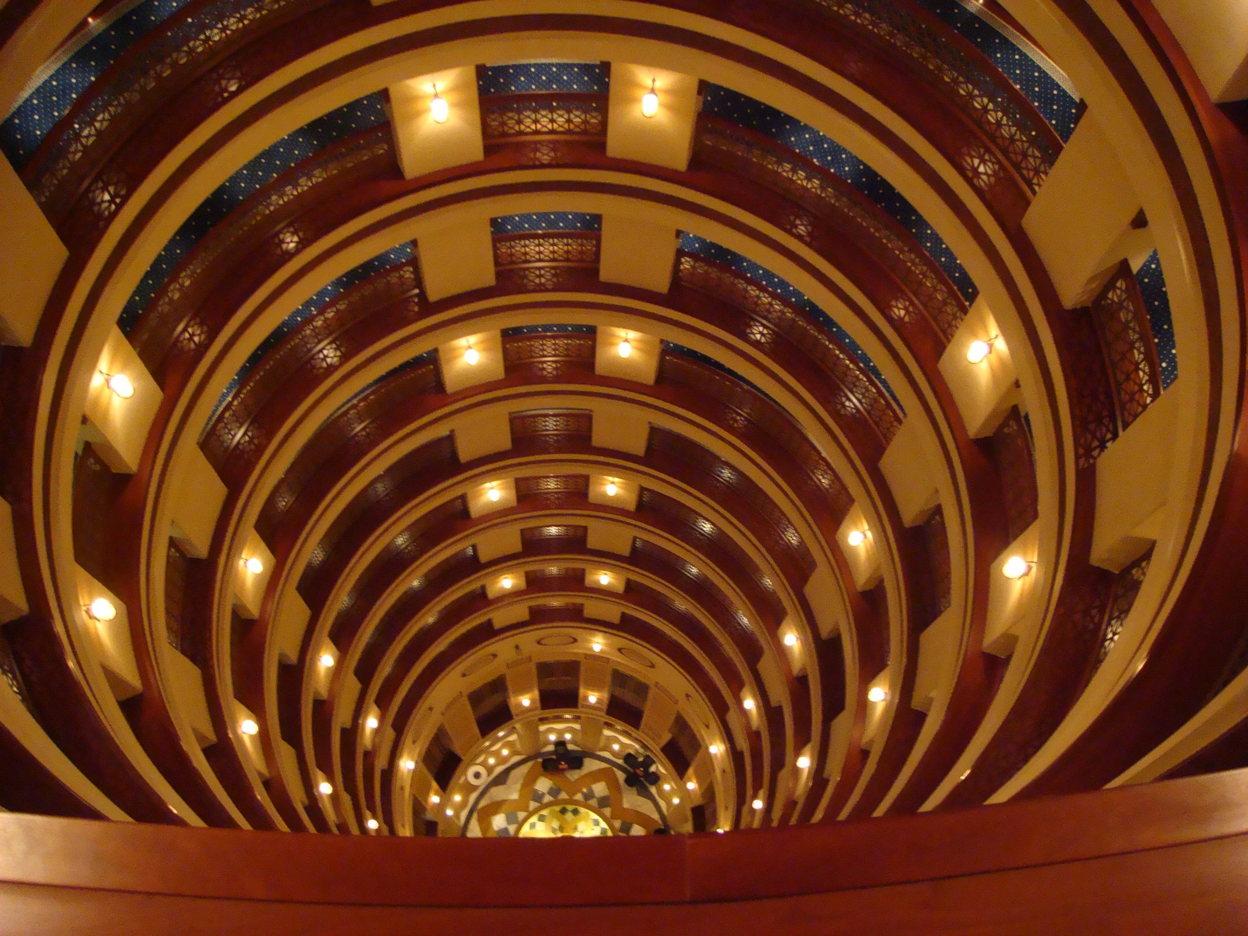 Sutton Vane Associates designed the lighting for selected parts of the interior and exterior for the Rosewood Corniche hotel, a prominent feature in the skyline of Jeddah which required lighting to emphasise the prestige of the building. One challenge was the lighting of the extraordinary cylindrical atrium and its highly decorated ceiling. The light from the atrium was needed for the landings and corridor areas as well as for the reception area below. The luxurious swimming pool on top of the 18 storey hotel roof overlooks the city, and has real flames at the top of each column. SVA designed special feature column lights which illuminate the areas around the pool without detracting from the skyline or causing glare to people using it.